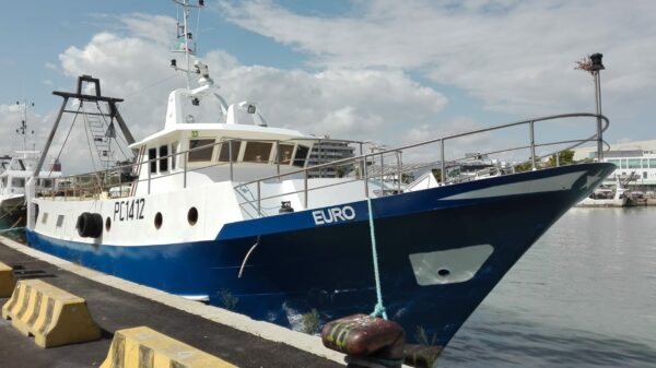 Motopesca Euro di metri 21,40 è stata costruita nel 2001, in acciaio inox, dal cantiere Naval Comm di Giulianova.
