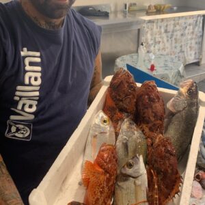 La cooperativa del Pesce a Ladispoli è una bellissima realtà dove si concentra la vendita del pescato di diverse imbarcazioni della piccola pesca locale, una delle quali appartiene proprio al proprietario Enea Fornari (Enea CV 2273).