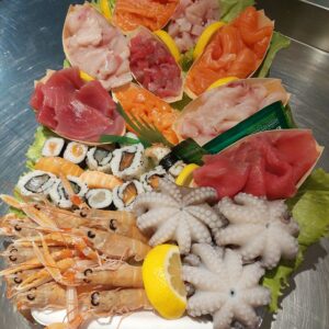 Inoltre la pescheria offre lavorazione dei crudi e un banco sempre ricco di pesce vivo proveniente dalle marinerie Pugliesi.
