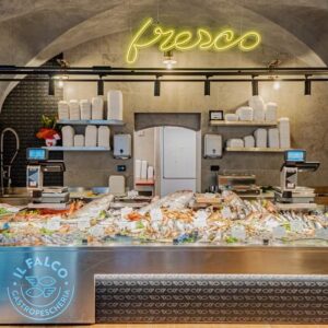 La Gastropescheria Il Falco è un ampio locale che dispone di un banco per i Freschi e uno per i Caldi.