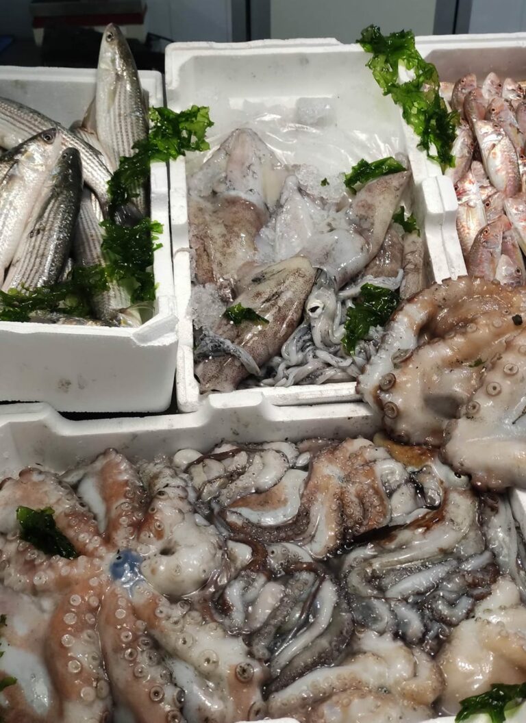 Sul banco non manca mai pesce freschissimo di giornata, pescato dai pescatori campani e di altre regioni limitrofe.
