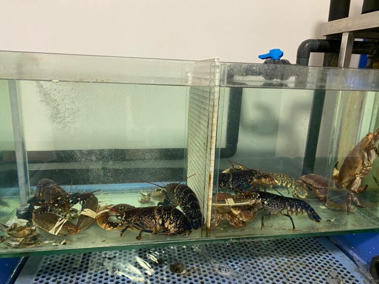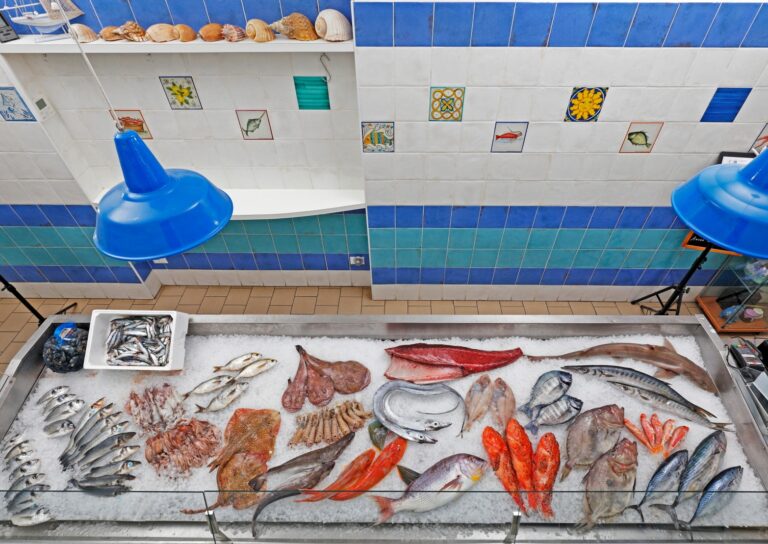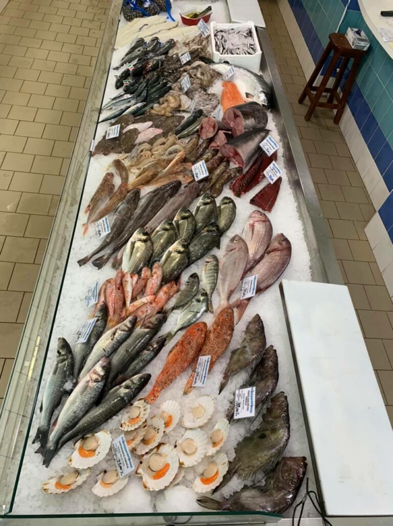 La pescheria dispone di un’ampia vasca per crostacei vivi, e un banco sempre ben curato e ben fornito.