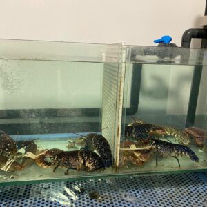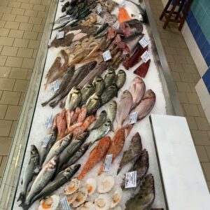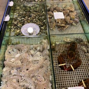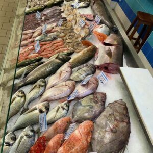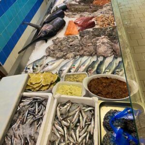 La pescheria dispone di un’ampia vasca per crostacei vivi, e un banco sempre ben curato e ben fornito.