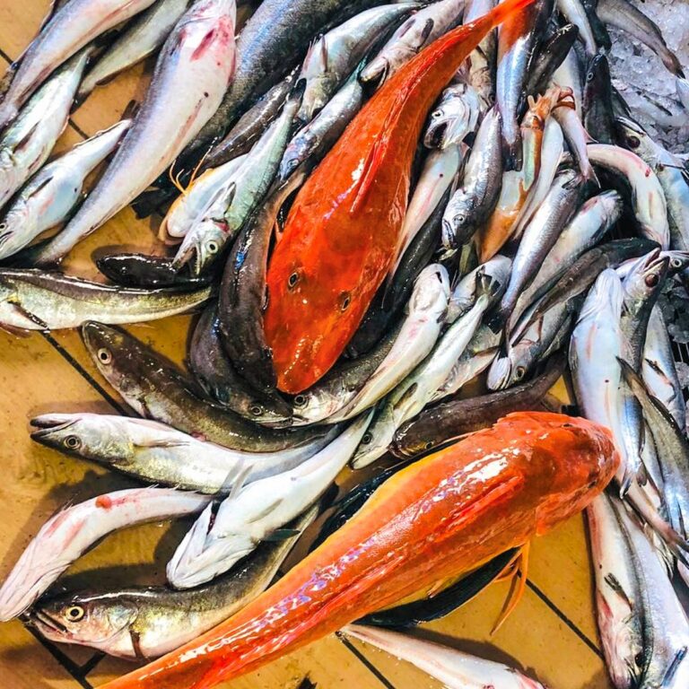 Si possono trovare quotidianamente frutti di mare come varie tipologie di vongole, ricci di mare e tantissima scelta di pesci di alta gamma.