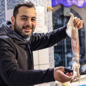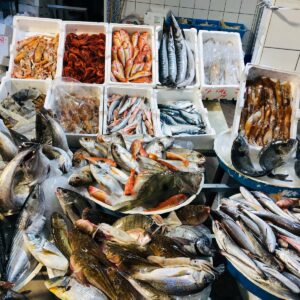 Si possono trovare quotidianamente frutti di mare come varie tipologie di vongole, ricci di mare e tantissima scelta di pesci di alta gamma.