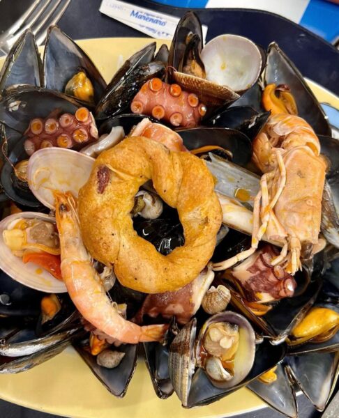 Qui oltre alla vasta scelta di pesce fresco appena sbarcato dai pescatori campani, si effettua l’apertura dei frutti di mare sul momento, il grande cavallo di battaglia è la famosa Zuppa di Cozze, piatto tipico del posto, il ristorante è gestito dalla signora Assunta alias “‘a Figlia d’ò Marenaro”.